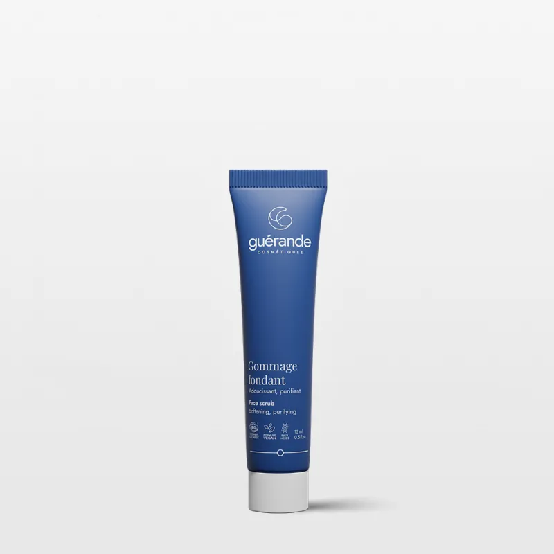 This organic facial scrub, formulated with Guérande Fleur de sel and Marine Clay, gently exfoliates and purifies the skin. It tightens pores, refines skin texture, and brings radiance and freshness to the complexion for a smooth, glowing finish. Upon rinsing, the unique texture of this natural scrub transforms into a milky lotion, making it easy to remove while leaving a soft, comforting veil on the skin.